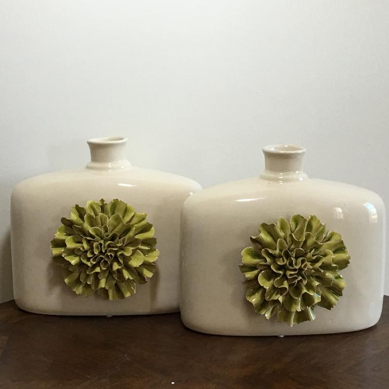 Isha set of 2 Ceramic green/Beige carved handmade vaseHandcrafted Green/Beige Vase which can Enhance beauty of any room.Measure approx..10H 10”W 4”DHandmade Item